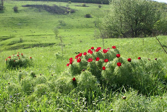 В начале мая расцветает пион тонколистый, в народе воронец. Это реликтовое растение.